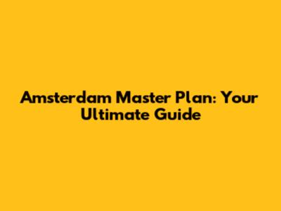 Amsterdam Master Plan: Your Ultimate Guide