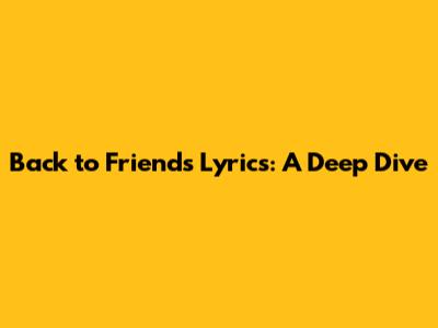 Back To Friends Lyrics: A Deep Dive