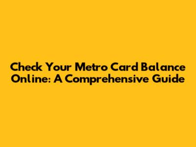 Check Metro Card Balance Online: A Quick Guide
