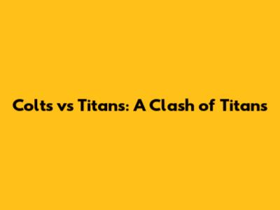 Conclusion: Colts vs Titans Showdown