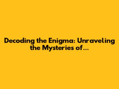 Decoding The Enigma: Unraveling The Mysteries Of...
