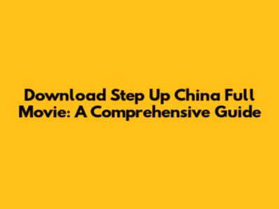 Download Step Up China Full Movie: A Comprehensive Guide