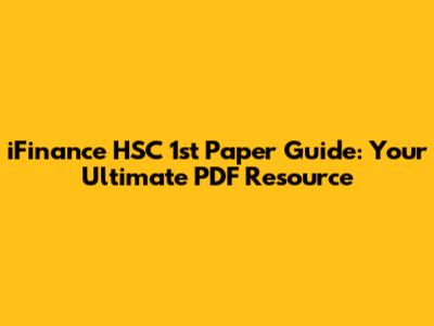 IFinance HSC 1st Paper Guide: Your Ultimate PDF Resource