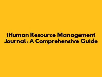 IHuman Resource Management Journal: A Comprehensive Guide