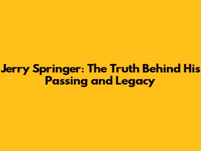 Jerry Springer: The Truth Behind His Passing And Legacy