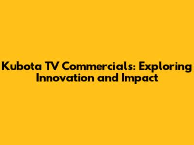 Kubota TV Commercials: Exploring Innovation And Impact