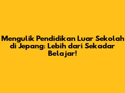 Pendidikan luar sekolah di Jepang adalah dunia yang menarik, guys! Lebih dari sekadar ruang kelas tradisional, sistem pendidikan ini menawarkan berbagai pengalaman belajar yang unik dan berharga. Kalau kamu penasaran tentang bagaimana orang Jepang belajar di luar lingkungan sekolah formal, mari kita selami dunia ini bersama-sama. Kita akan bahas apa saja yang ditawarkan, mengapa penting, dan bagaimana cara kerjanya. Jadi, siap untuk menjelajahi dunia pendidikan luar sekolah di Jepang? Yuk, mulai petualangan belajar kita!
