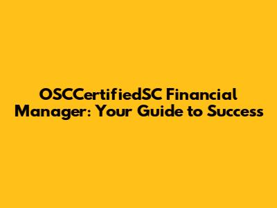 OSCCertifiedSC Financial Manager: Your Guide To Success