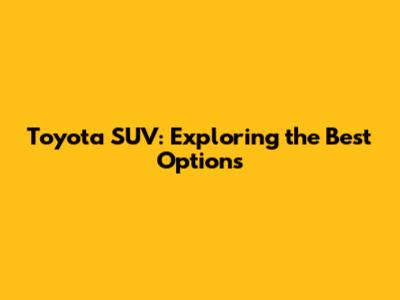 Toyota SUV: Exploring The Best Options