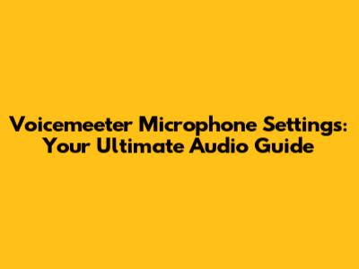 Voicemeeter Microphone Settings: Your Ultimate Audio Guide